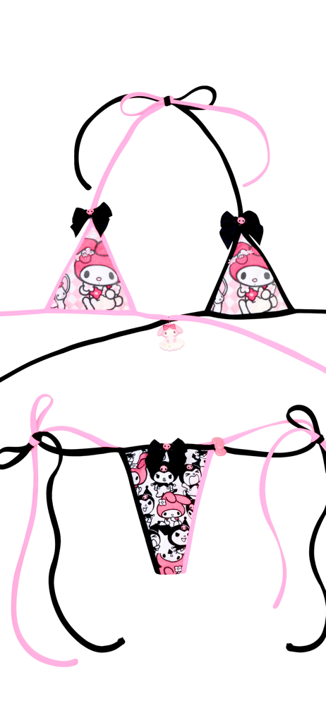 - The front of the bikini is made of terry material, Inside and straps are made of stretch nylon swimsuit fabric.