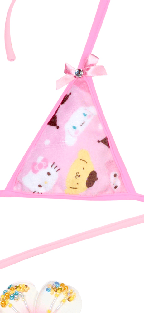 - The front of the bikini is made of terry material, Inside and straps are made of stretch nylon swimsuit fabric.
