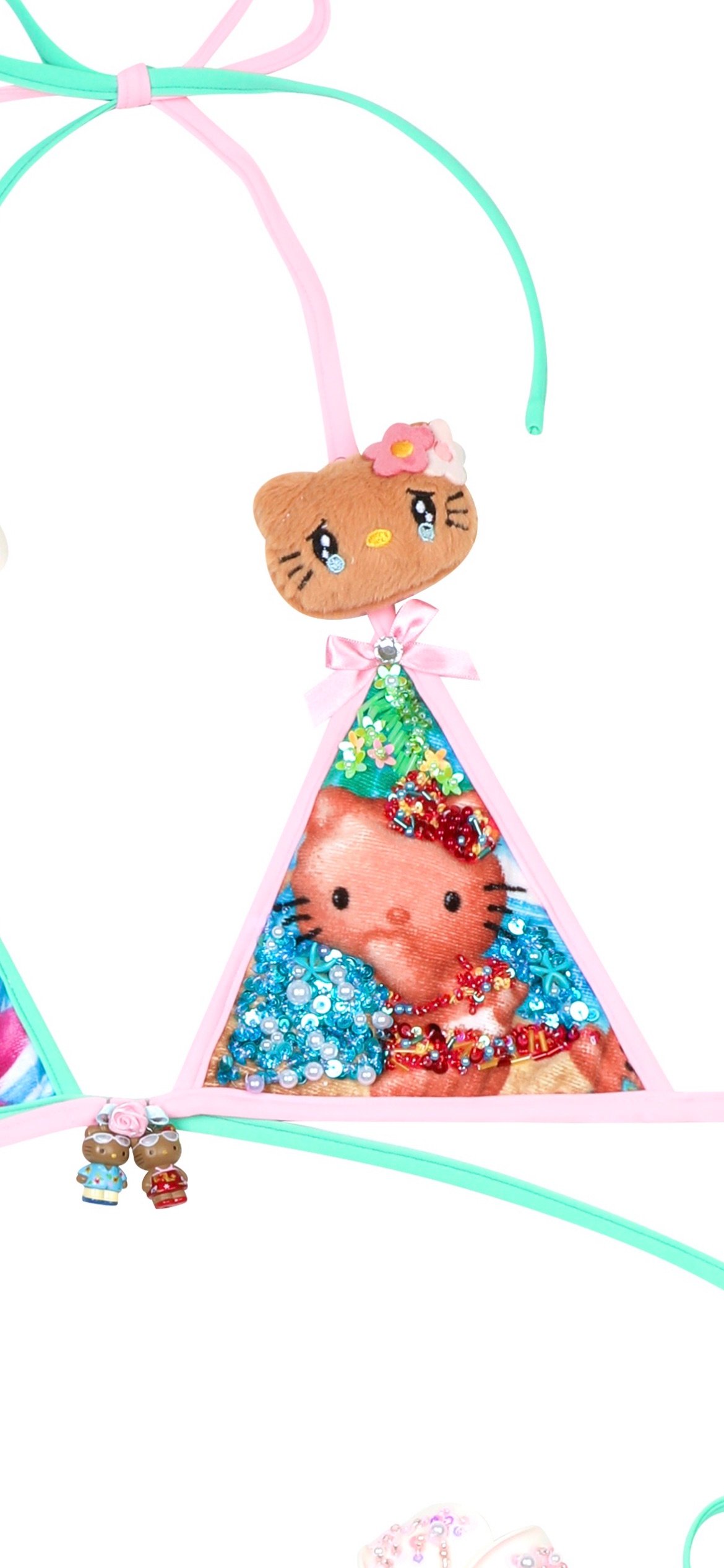 This bikini made with legenary fabrics, which are Tanned hellokitty on the surfing mood, on the beach chilling mood, Hellokitty is sleeping on the very rare wale .